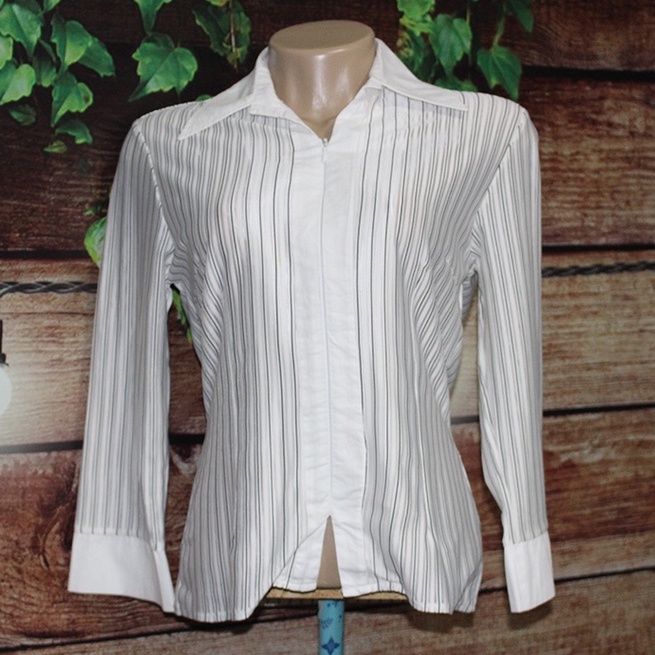 Camisa Social Feminina Tecido Leve Branco Listrado manga longa com z per 10