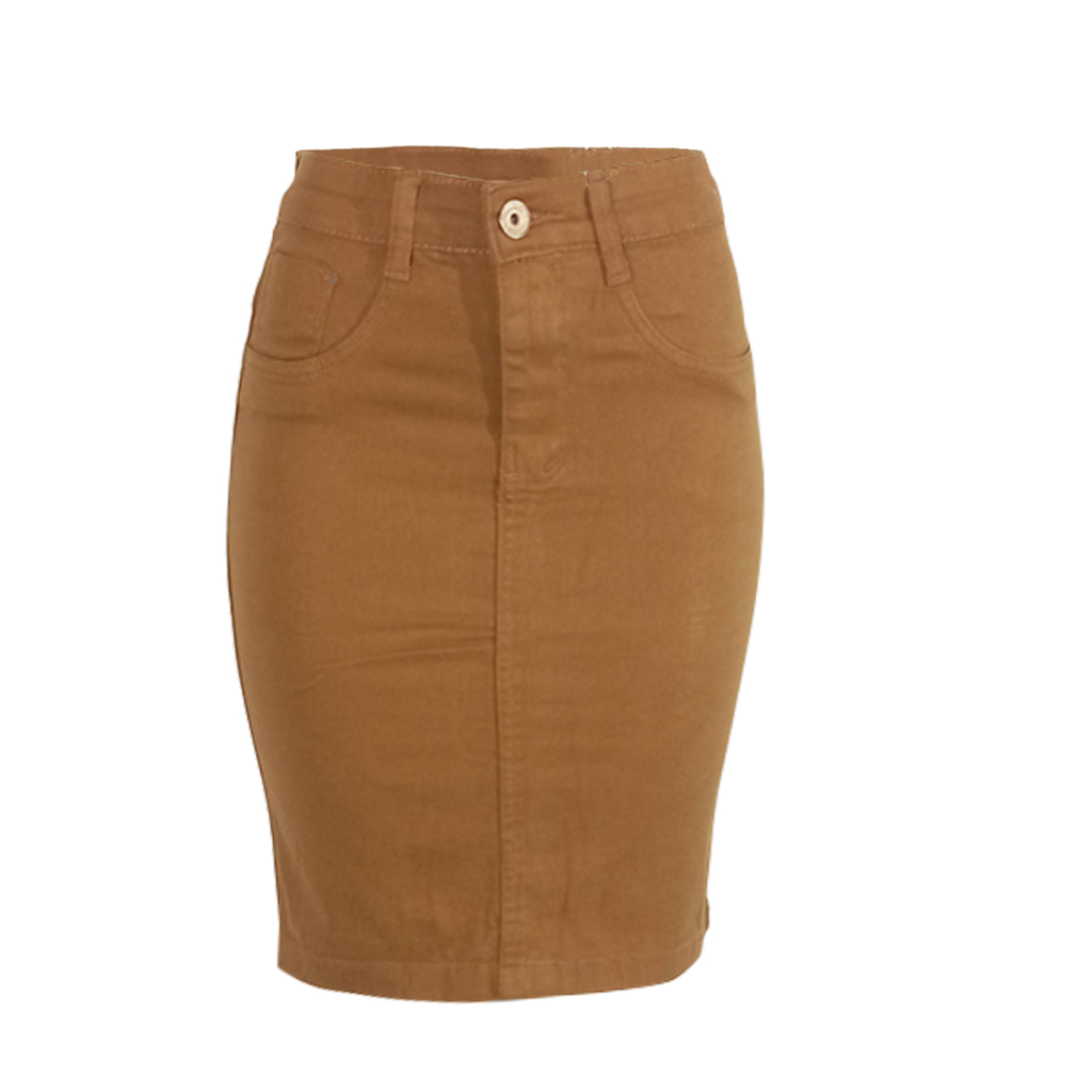 Saia Jeans na cor Caramelo com J IA RARA MODA Evang lica
