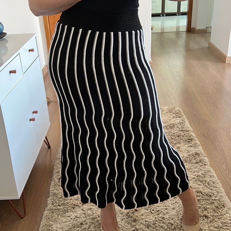 Saia Longa Vera Tricot em Tricot Preta e Branca Saia Feminina