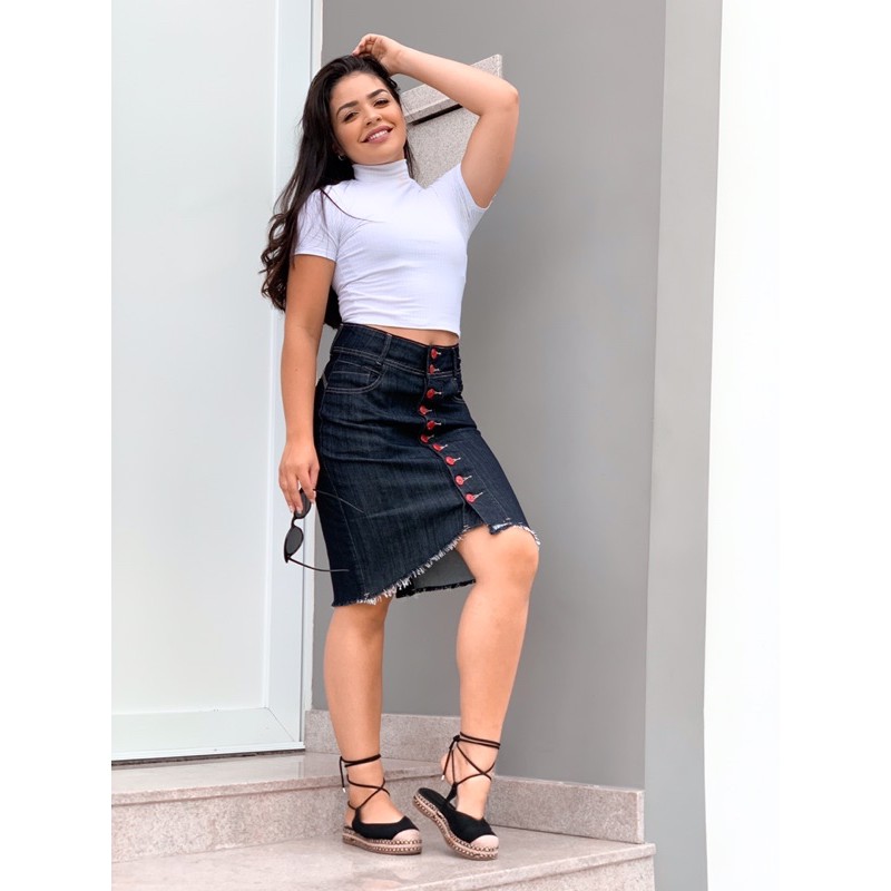 Saia Resinada Detalhe No C s Preto Hapuk Moda Evang lica Feminina