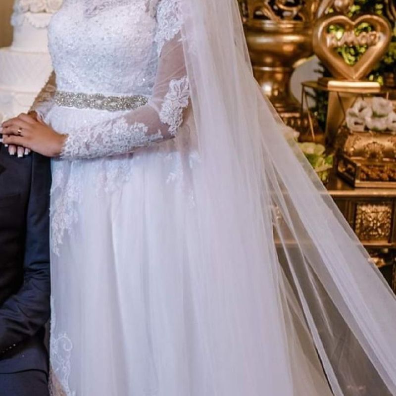 Vestido de noiva elegante gola alta manga longa modesto HAREM s