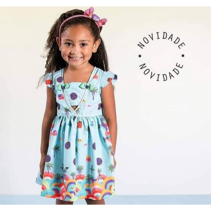 Vestido infantil da marca Alphabeto com estampa de a a Moda Infantil