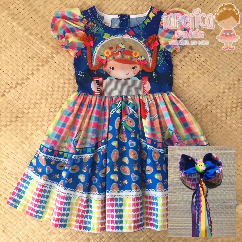 Vestido Junino Matuta Caipira ALPHABETO acess rio de cabelo