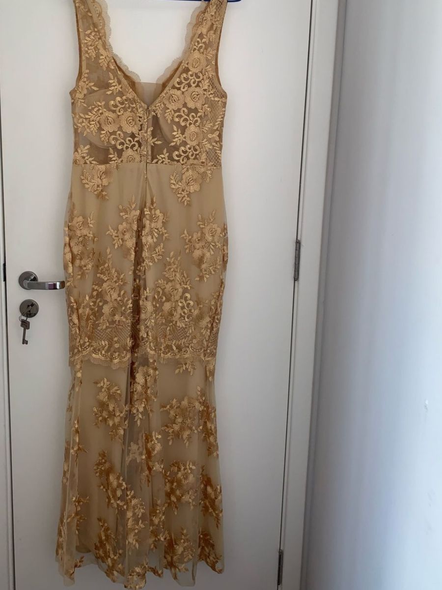 Vestidos de madrinha clearance em santo andré, Vestido de Festa Dourado Roupa de Casamento Feminina Moca Bonita clearance