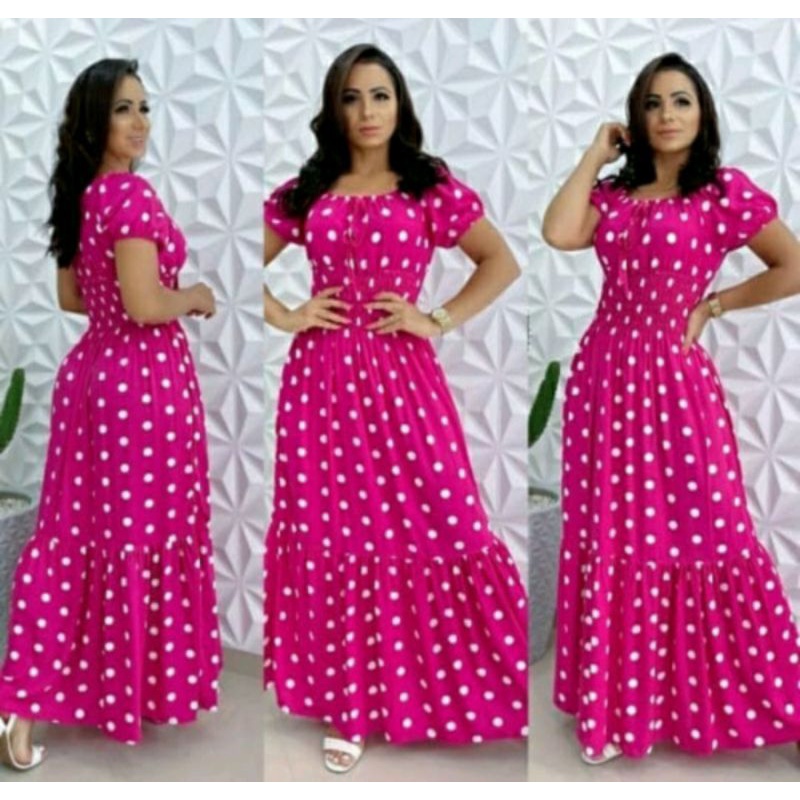 Vestido Ciganinha Longo Com Lastex Poa De Bolinhas Estampado Moda Tend ncia 2023