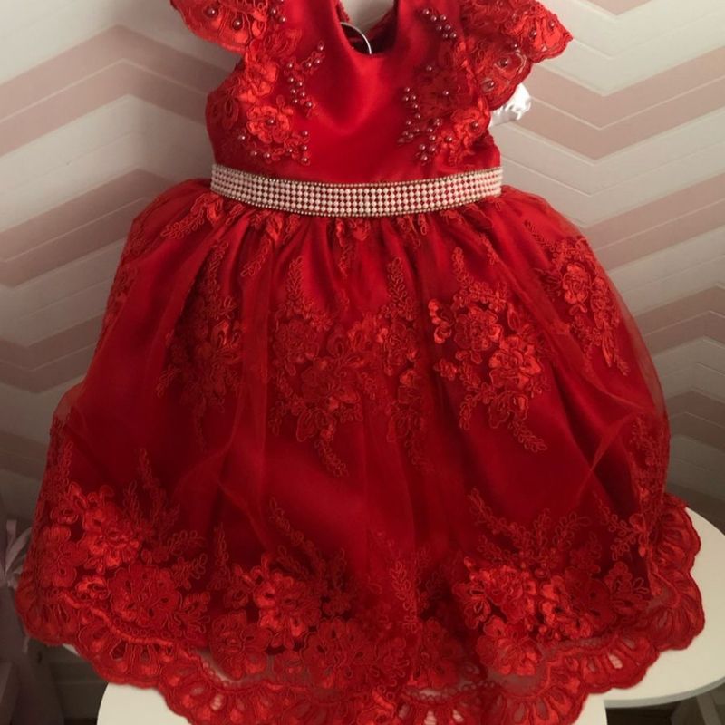 Vestido infantil renda renascen a po vermelho 9 meses 1 ano e
