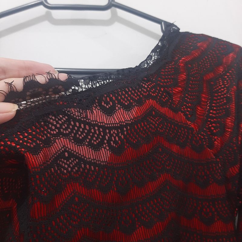 Vestido Curto Vermelho e Preto Cetim e Renda Preta por Cima Tamanho P Marca Rosa P . Vestido Feminino Rosa P Usado 87534781 enjoei