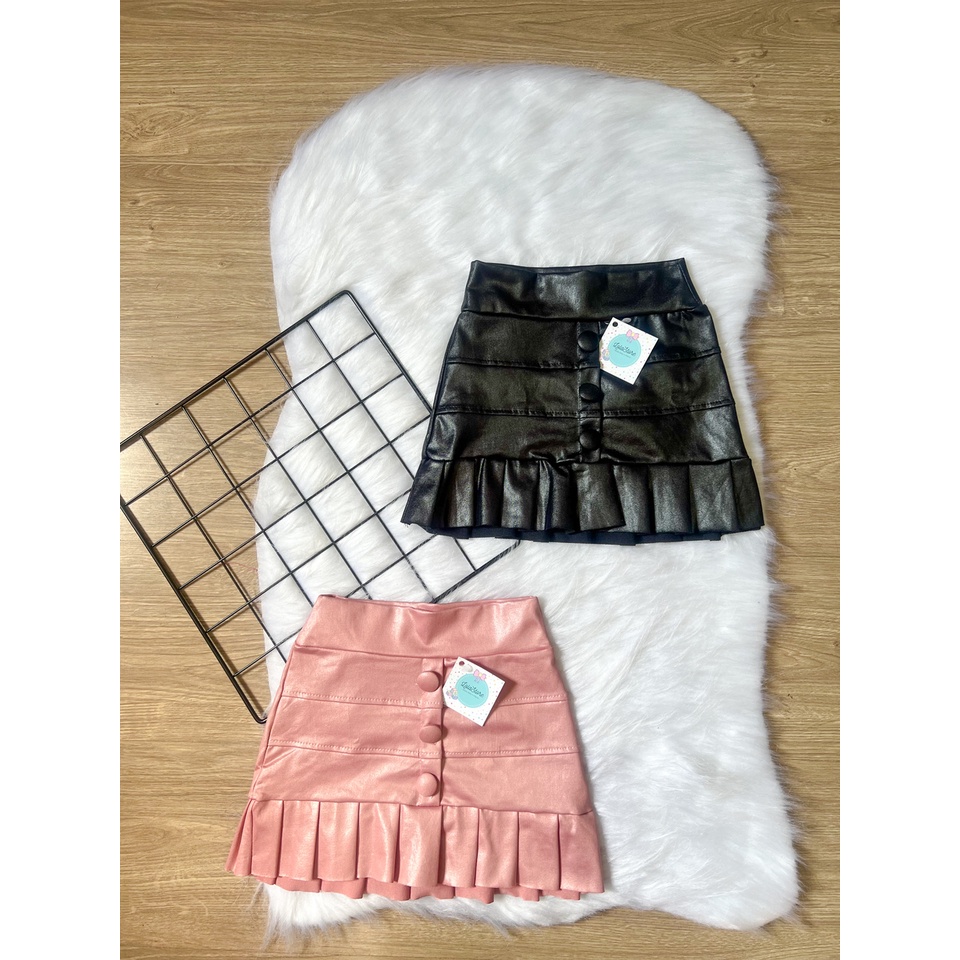 Saia Infantil Couro fake Cirre Babado Brilhante Preta Rose Rosa Moda Blogueirinha Mini Diva Lan amento Novidade Promo o Ver o 2022