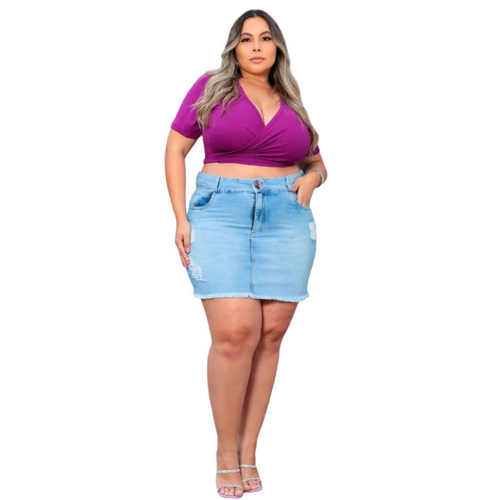 Mini Saia Plus Size Jeans Azul LOJA LURDS PLUS SIZE