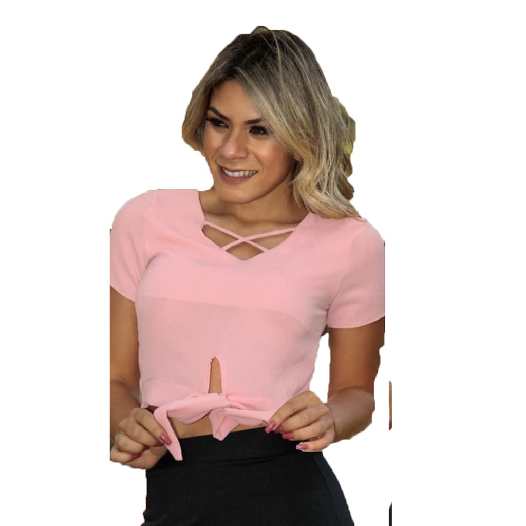 Blusinha Top Cropped Feminina Com La o Primavera Ver o Calor Tecido leve fresquinha