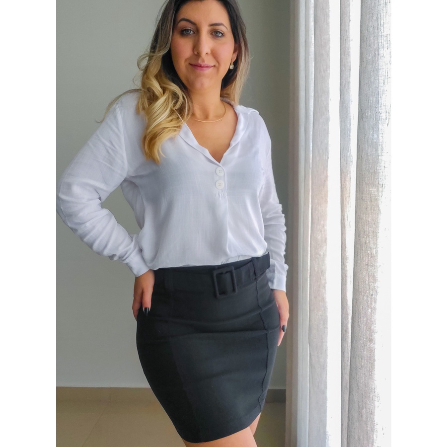 Saia Gislene Justa Com Cinto HapukSaias Sociais nome marca