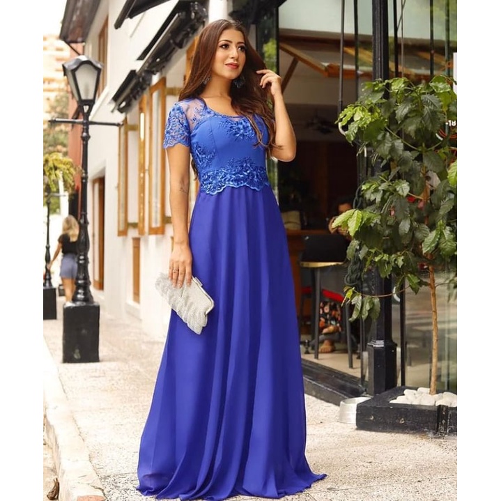 Vestido Longo Verde Esmeralda corpo com Renda Desmod