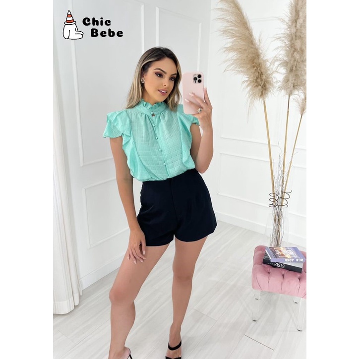 Blusa social feminina de botao com laise na manga XH3131 Shopee