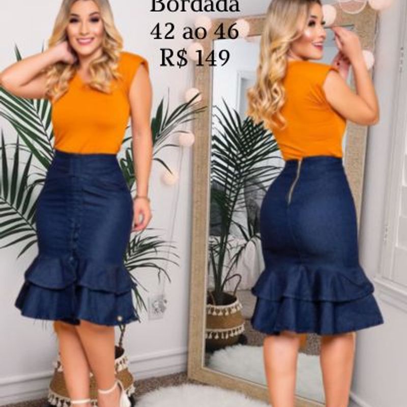 Saia Jeans Midi Evang lica Moda Executiva Tam. 42 Ao 46 Saia