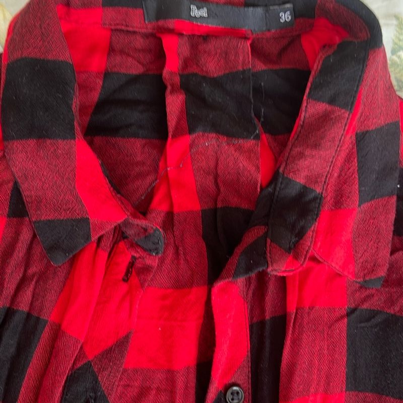 Riachuelo Camisa Feminina Bolsos Xadrez Vermelho Pool by Riachuelo