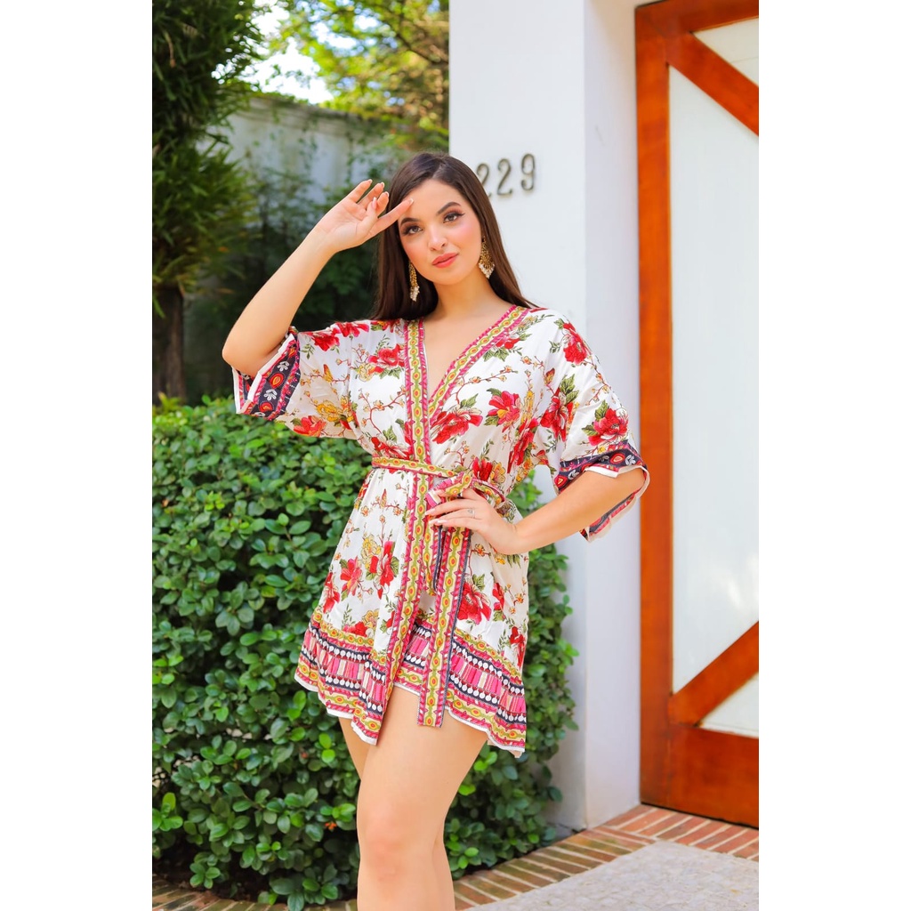 Vestido clearance kimono curto, C A vestido kimono curto de viscose com transpasse bege claro clearance