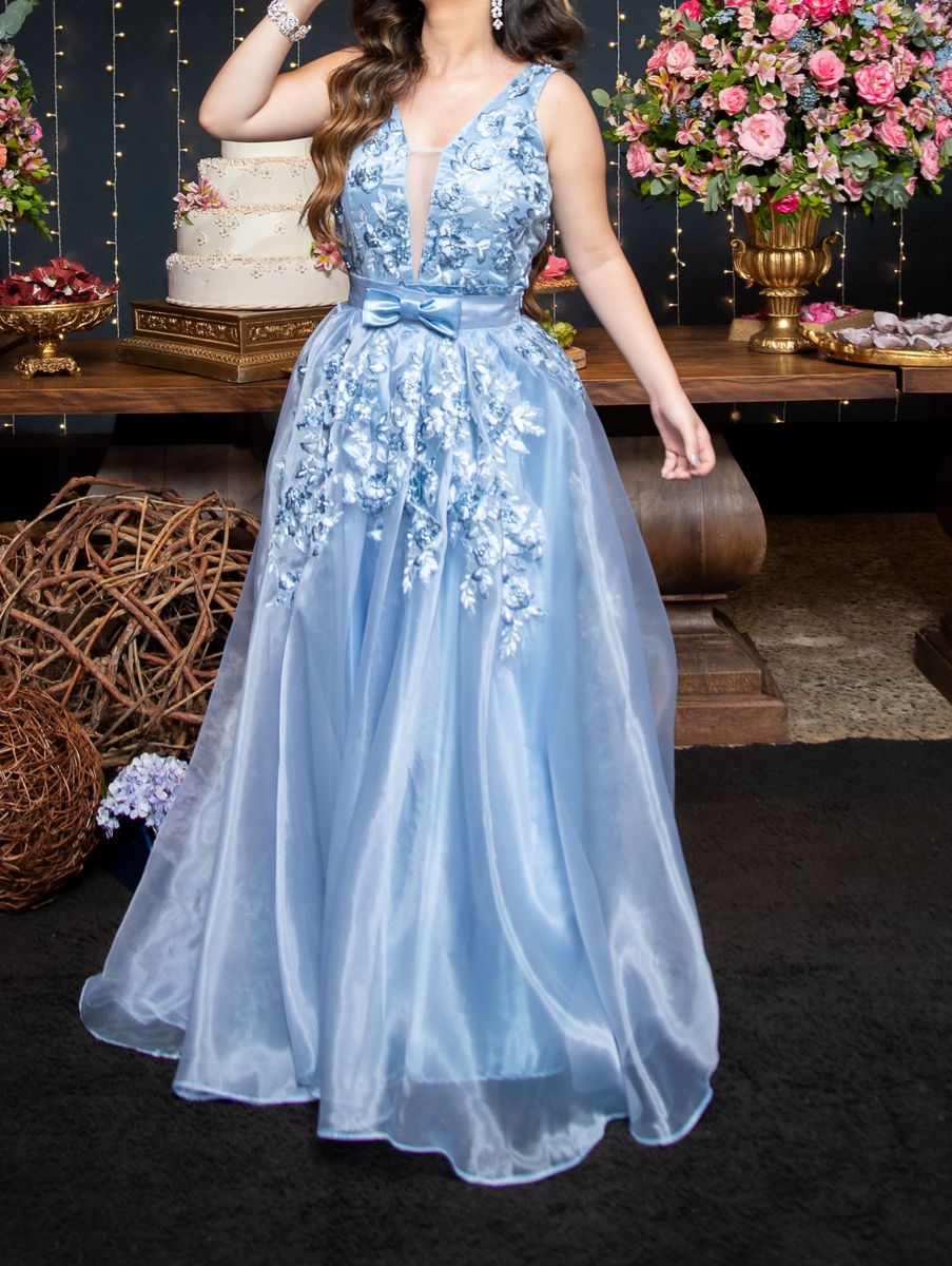 Vestido 15 Anos Debutante 2 em 1 Azul Vestido de Festa Feminino