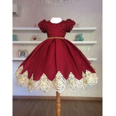 Vestido Infantil Festa Marsala Princesa Anivers rio Daminha Aia