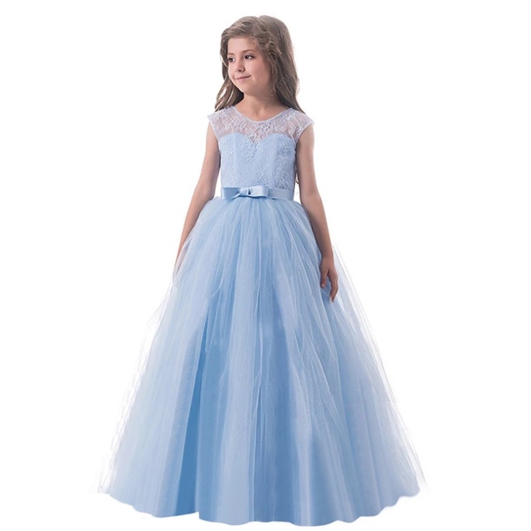 Vestido de daminha clearance azul claro, Casa das Damas Vestido de daminha com barra de flores clearance