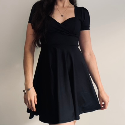 Vestido preto curto clearance rodado com decote