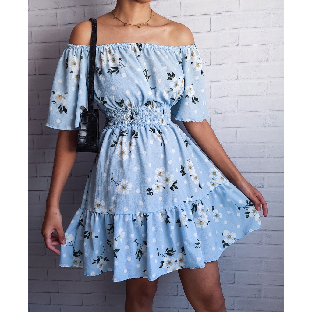 Vestido ciganinha curto clearance rodado, Vestido Ciganinha Curto Floral Rodado Ombro A Ombro clearance