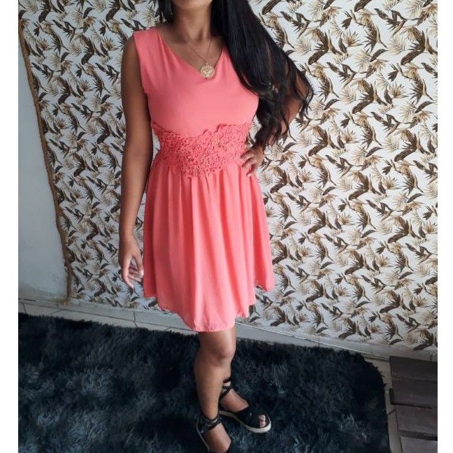 Vestido de festa clearance salmão curto, Vestido salm o compre online timos pre os Shafa clearance