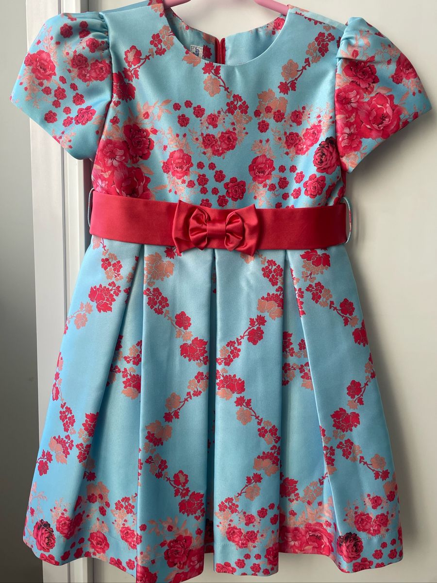 Vestido de festa clearance infantil azul turquesa, Vestido de Festa Infantil Azul Turquesa com Flores Ros Roupa clearance