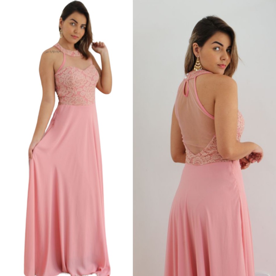 vestido longo rosa tiffany marsala cores P M GG moda festa gola madrinha casamento noiva gestante confortavel