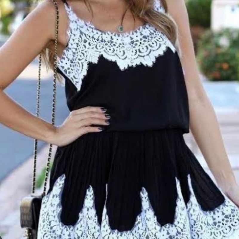 Azul com renda Azul com renda branca Vestidos estilosos Moda