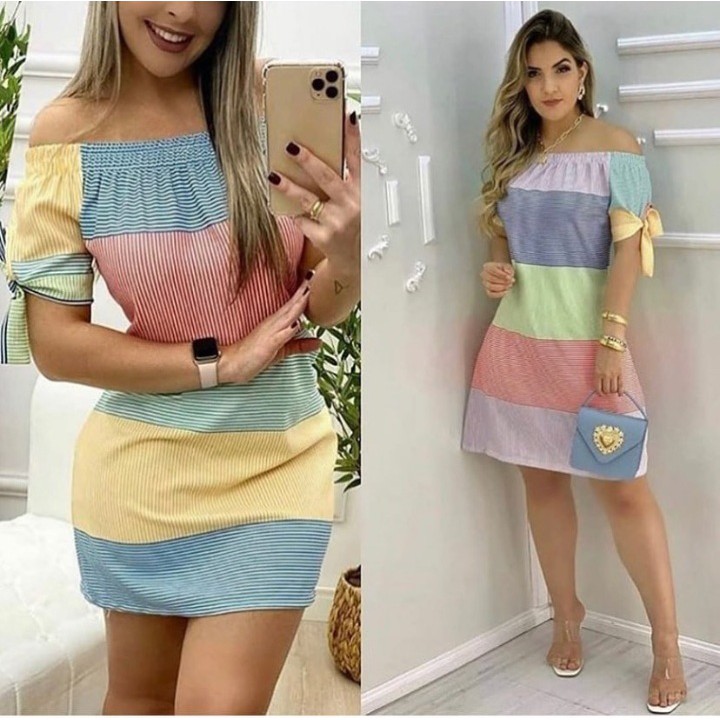 Vestido listrado colorido clearance curto, Vestido de Alcinha Curto em Algod o Listrado Preto Lojas Renner clearance