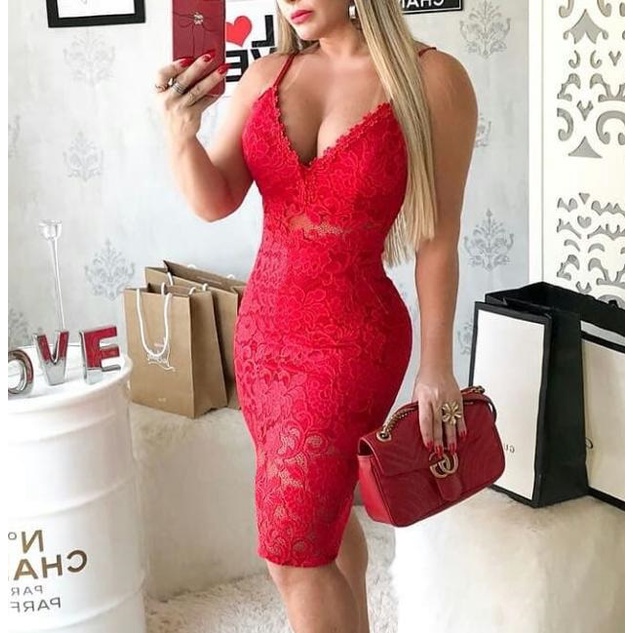 Vestido com renda de al a regul vel vestido colado moda gringa