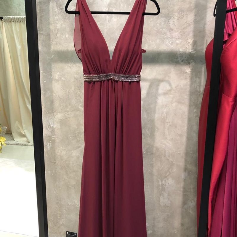 Vestido Longo Marsala com Cinto e Costas Abertas