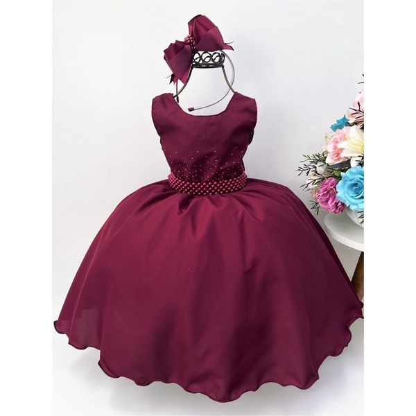 Vestido infantil de clearance festa marsala, Vestido Infantil De Luxo Marsala Liso Com Strass No Busto Perfeito Para Princesa Festa Casamento Daminha Formatura clearance