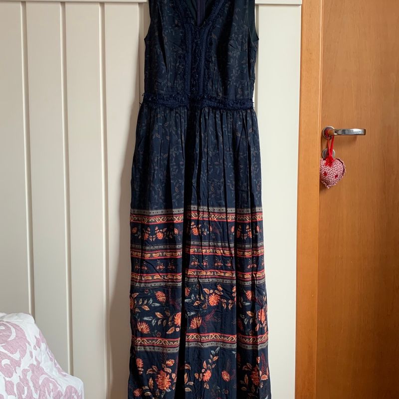 Vestido clearance antix azul, Vestido Antix Estampado Azul Marinho Longo Decote V Vestido clearance