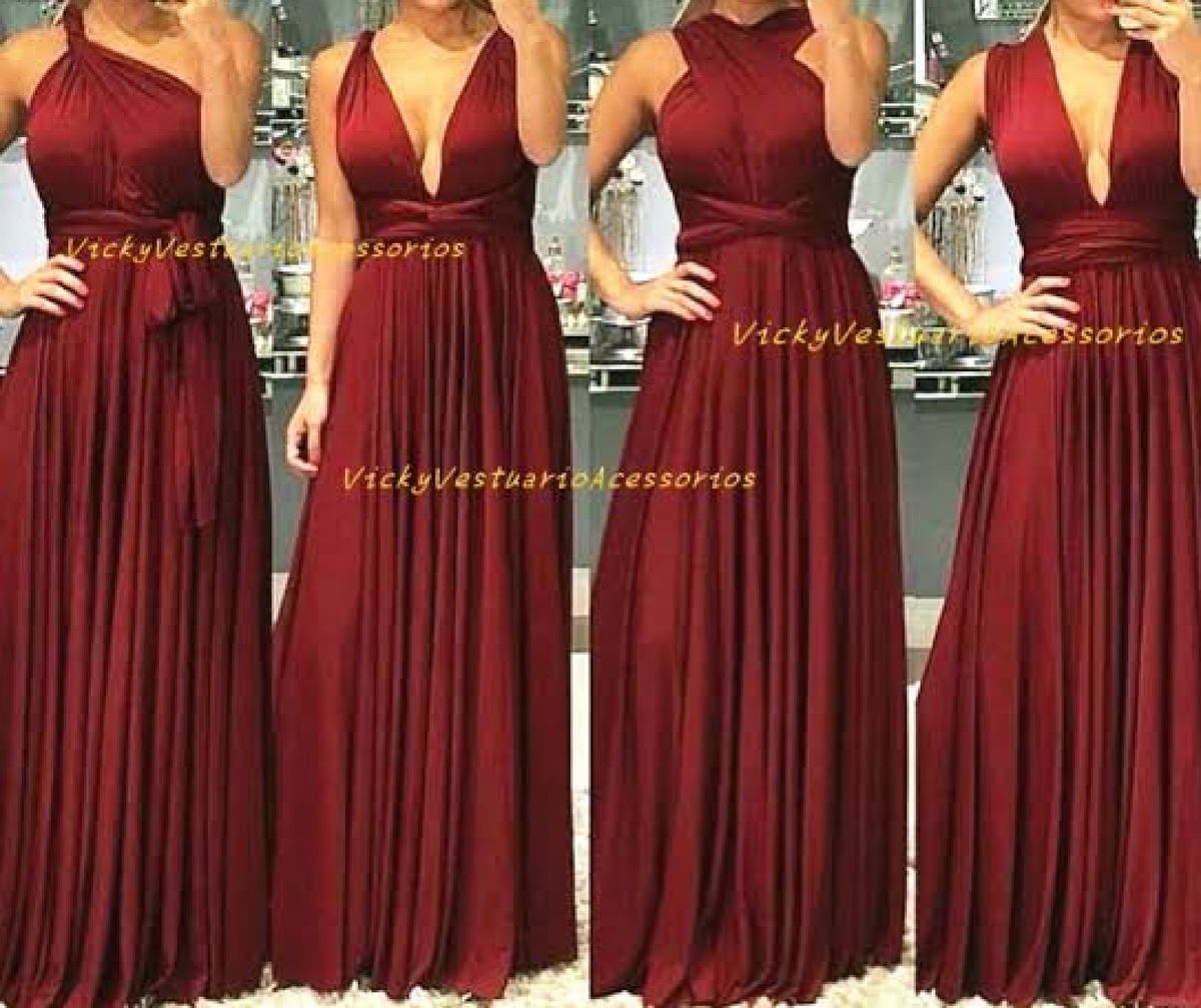 Vestido Multiformas Longo Festa Amarra o Marsala Cia do Vestido