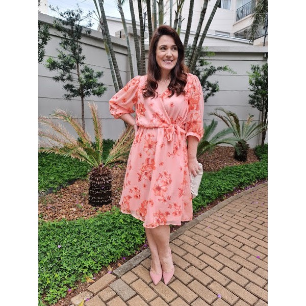 Vestido Crepe Voil Forrado Estampado Floral Amarra o Lateral