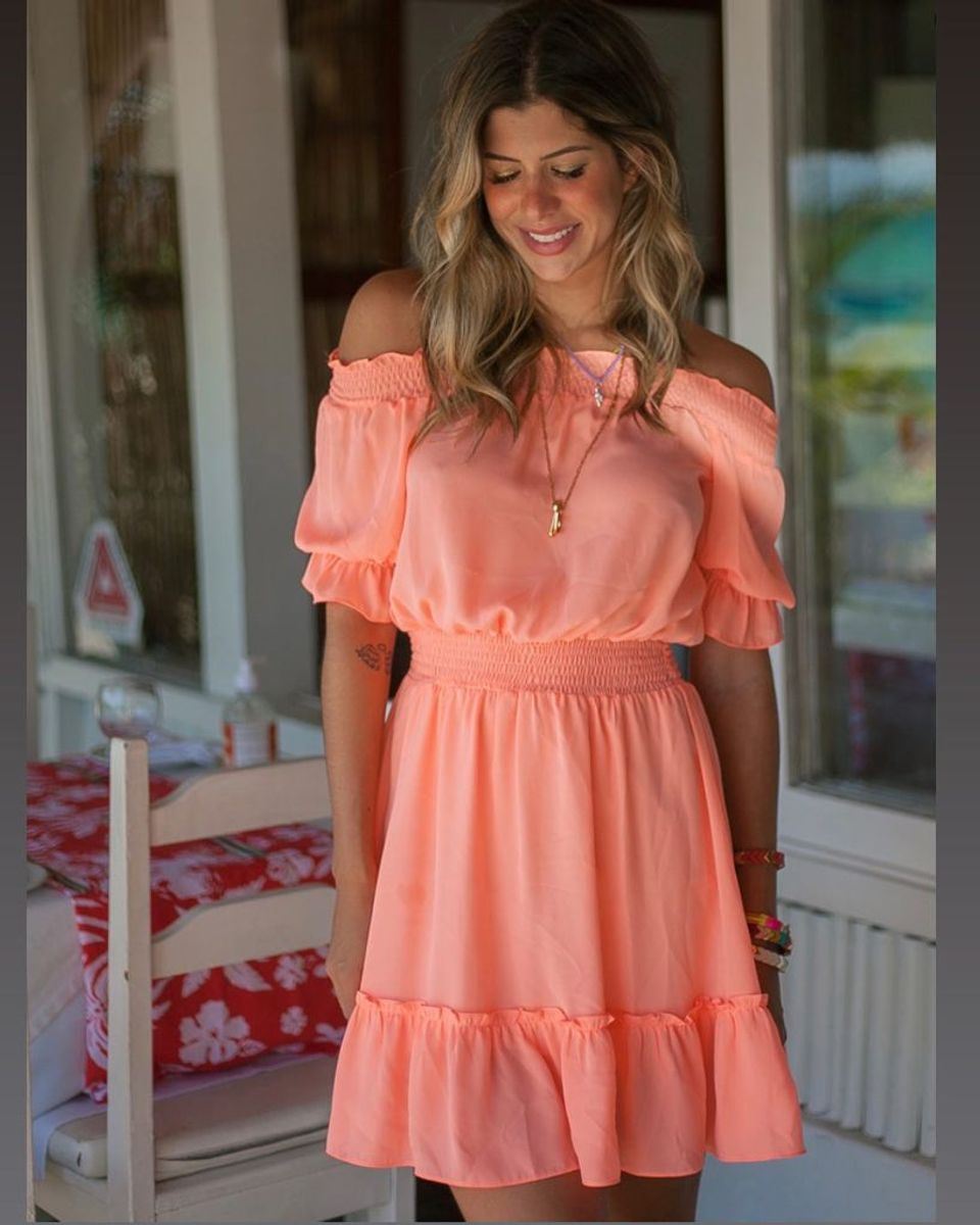 Vestido Rosa Curto de Babado Casamento Festa Verao Vestido