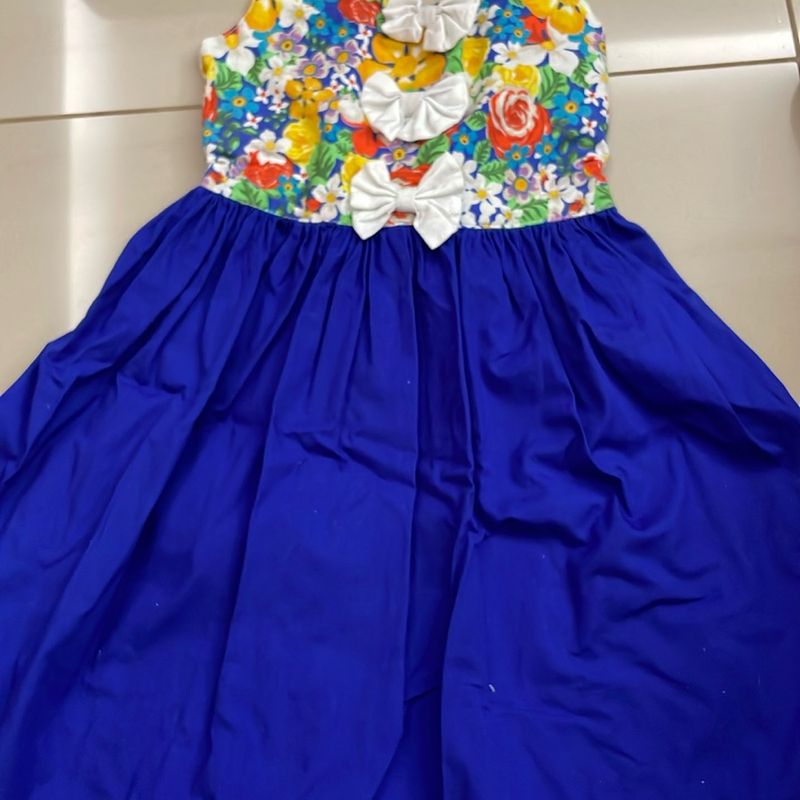 Vestido Azul com Florido Roupa Infantil para Menina Vestido