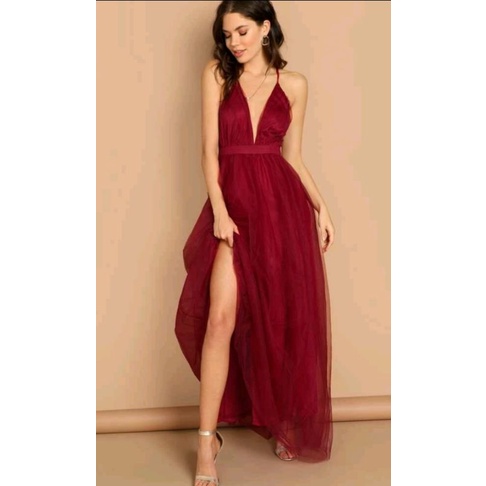 Vestido clearance marsala decotado, Vestido Marsala Longo Com Fenda Festa De Casamento Brilho Em clearance
