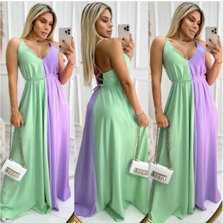 Vestido Longo Limone Rosa Azul Boutique Soul Queens
