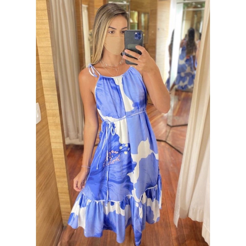 Farm clearance vestido azul, vestido farm vestida de flor azul floral amarra es longo perfeito desejo clearance