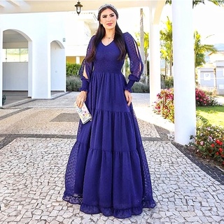 Vestido longuete azul clearance marinho, Vestido Longo Azul Marinho Shopee Brasil clearance