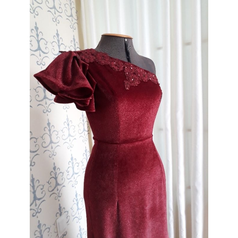 Vestido longo em veludo marsala especialmente feito para a nossa
