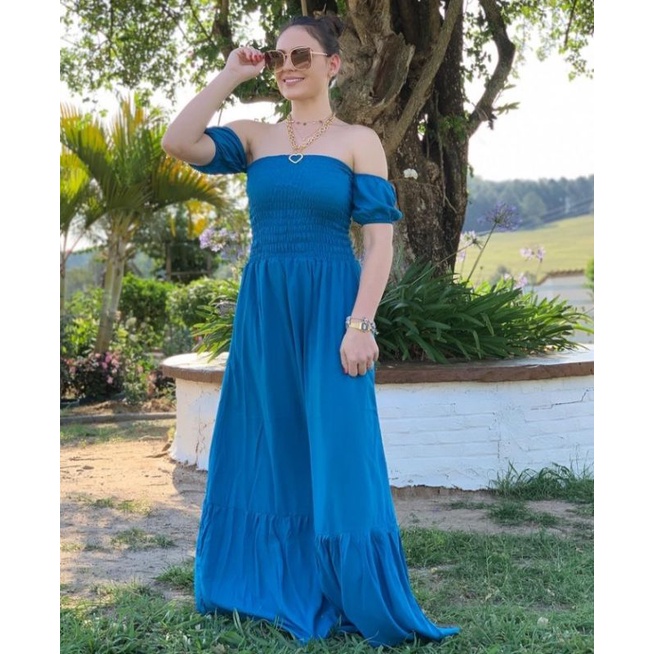 Vestido ciganinha azul clearance marinho, Vestido Ciganinha Azul Marinho Shopee Brasil clearance