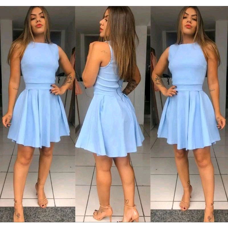 Vestido azul claro clearance curto rodado