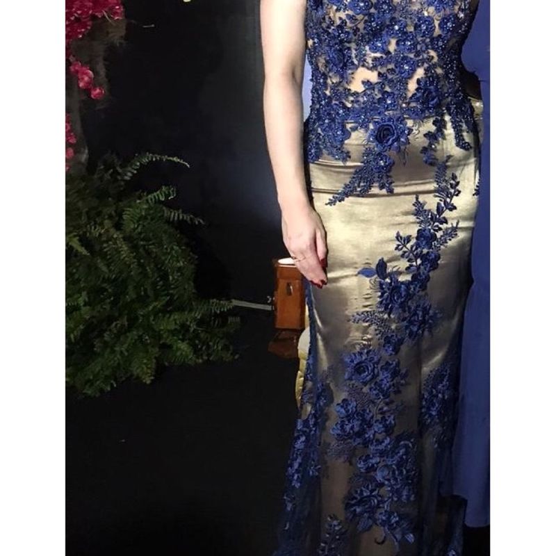 Vestido de Festa Azul Marinho e Dourado com Renda Vestido de Festa Feminino Usado 61721475 enjoei