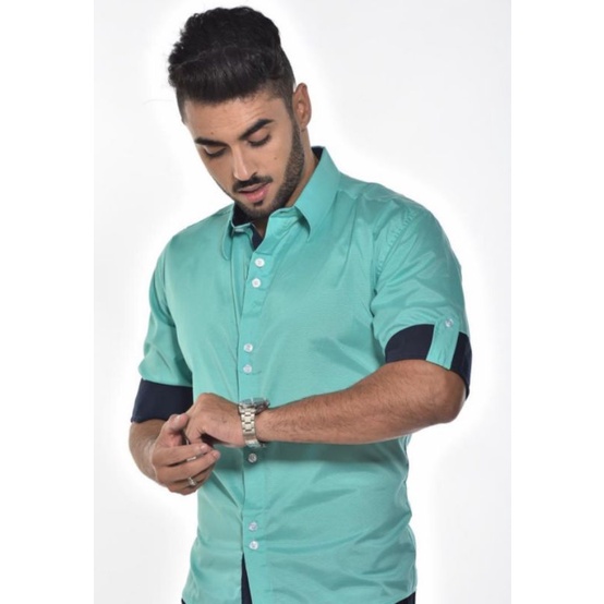 camisa social masculina slim manga 3 4 GG verde claro casamento igreja festa formatura