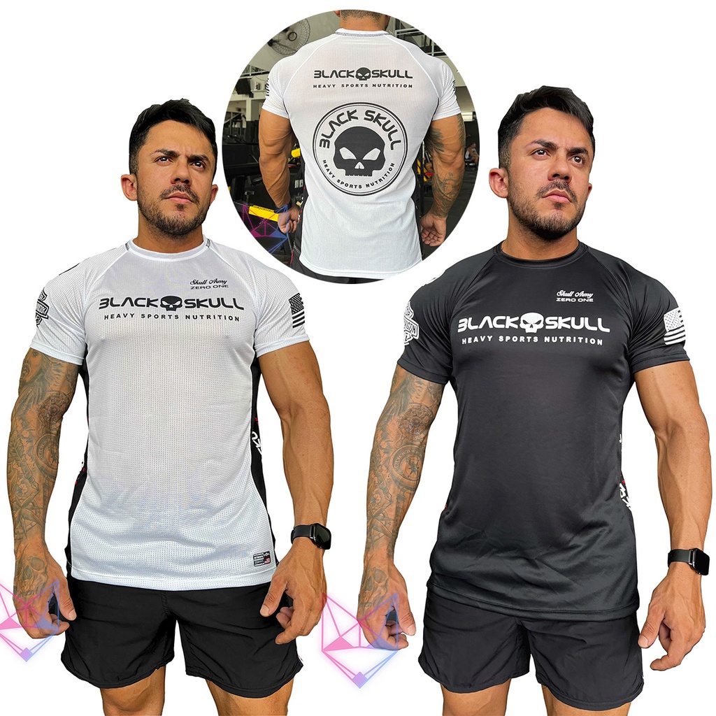 Camiseta academia treino Dry Fit Black Skull Corre Que Ta