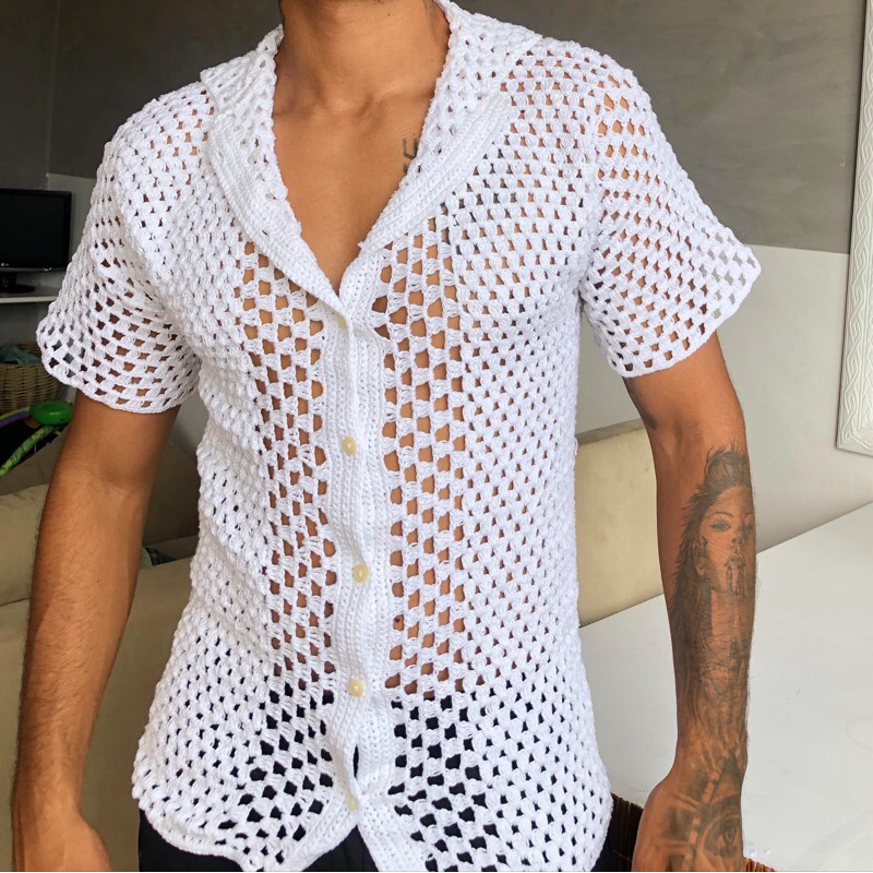 Camisa clearance de croche, DIA DOS PAIS Camisas de Croch Masculina com Gr ficos clearance