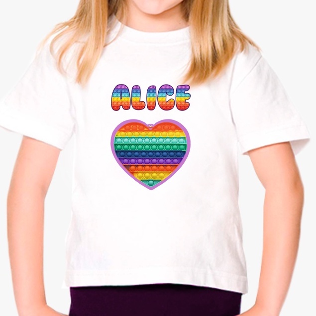 Camisas pop clearance, Camiseta POP IT FIDGET TOY INFANTIL Personalizada ZLprint Estampa Cora o com NOME Alice clearance